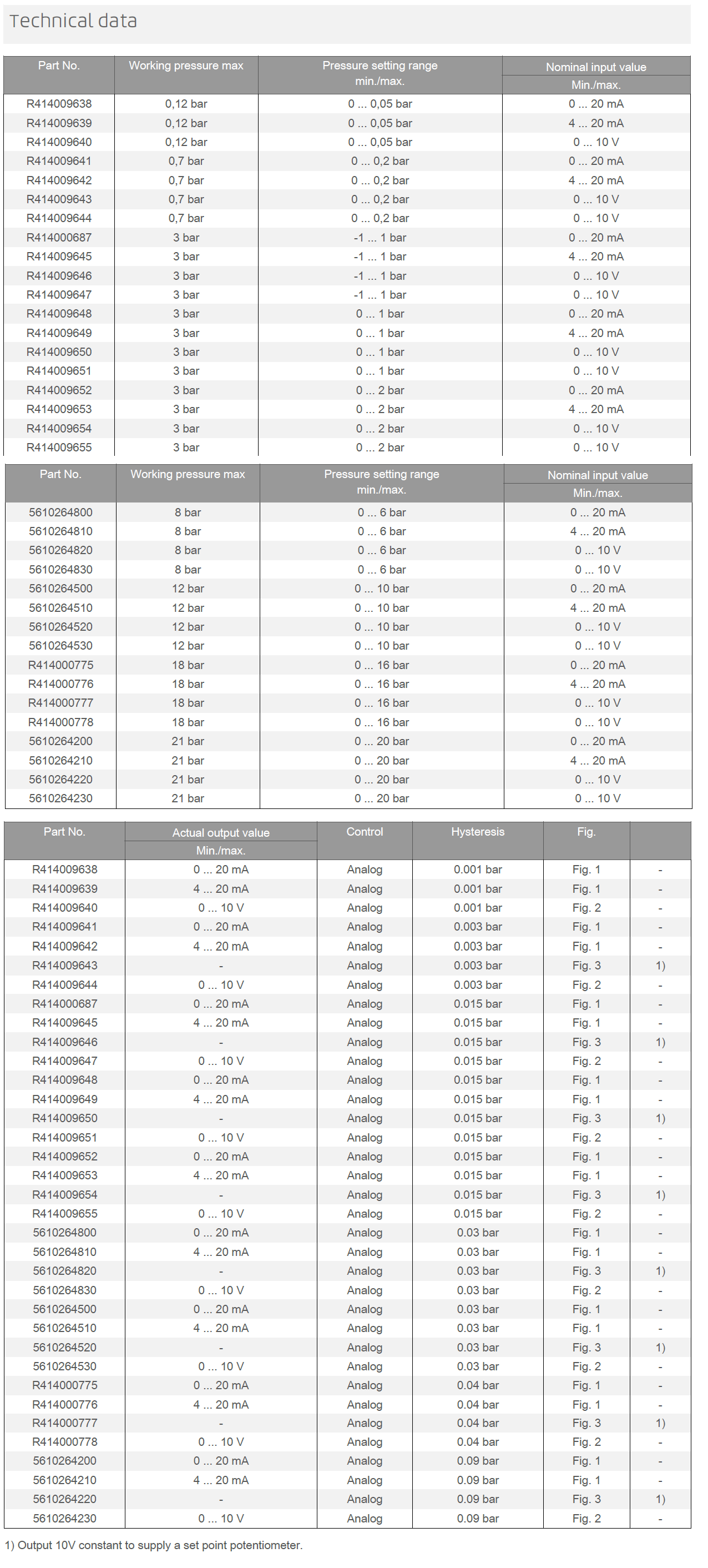 0 - 0.05 bar 0 - 0.2 bar 0 - 1 bar |